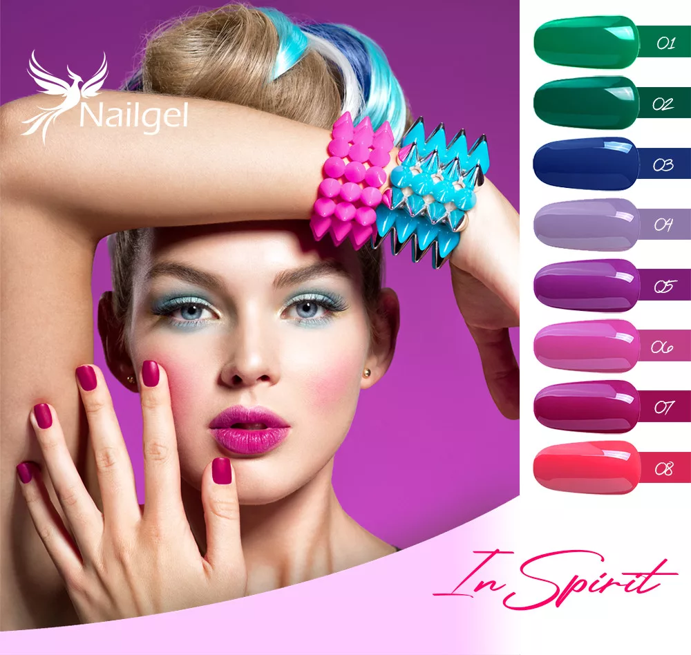 Az InSpirit gél lakk elsősorban a köröm teljes felületének festésére alkalmas. Különösen az egyszerű és gyors felhordás teszi érdekessé és népszerűvé. Használata előtt alaposan rázd fel, hogy a pigmentek életre keljenek. Az InSpirit gél lakk használatát is a körmök bolyhosítása előzi meg. Ezután told fel a körömbőrt és ha szükséges zsírtalanítsd azt. Kezeld a vendéged körmét primerrel és alapozd Nailgel Smart base általános alapozóval. Ebben az esetben is használnod kell az UV lámpát, de most csak egy percig tartsd alatta vendéged körmét. Nincs más hátra, mint a Nailgel InSpirit gél felvitele. Amennyiben 2 rétegben alkalmazod ezt a gél lakkot, akkor minden réteg után használj UV lámpát. Ezután nincs más hátra, mint az Ultra Shine Top Coat fényzselé és kettő percig az UV lámpa alkalmazása.
