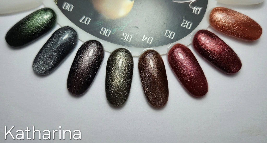 A Katharina gél lakk egy közepesen pigmentált, 3 lépéses és közepesen sűrű gél lakk, amely két rétegben tökéletes fedést biztosít. Speciális mágneses pigmentjeinek köszönhetően sejtelmes, macskaszem-hatást hoz létre, amely minden fényben más és más arcát mutatja. A kollekció 8 gyönyörű, ősz inspirálta árnyalatot tartalmaz, melyek a mély tónusokat a fényben életre kelő árnyalatjátékkal ötvözik – tökéletes választás az elegáns, szezonális megjelenéshez.